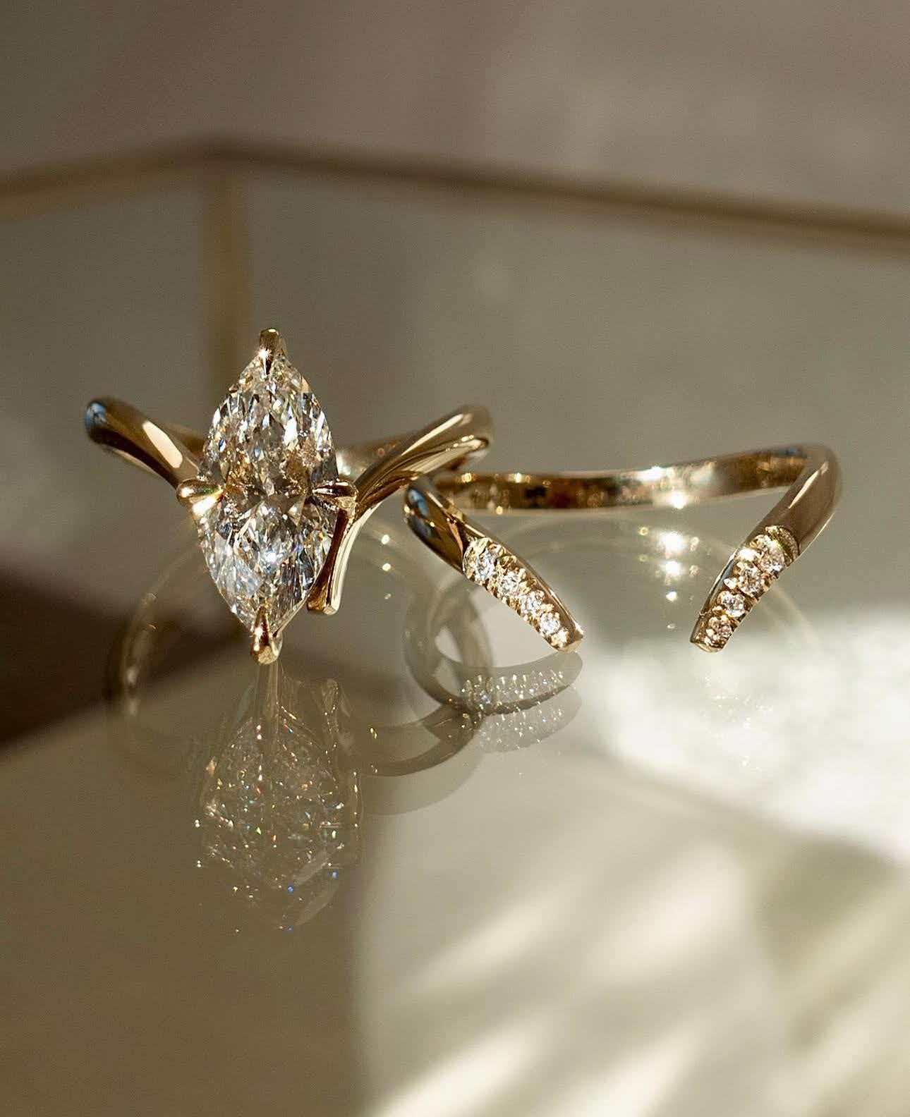 - Setting Material: 14K Yellow Gold (warm, durable base that softens the marquise cut’s sharp edges)