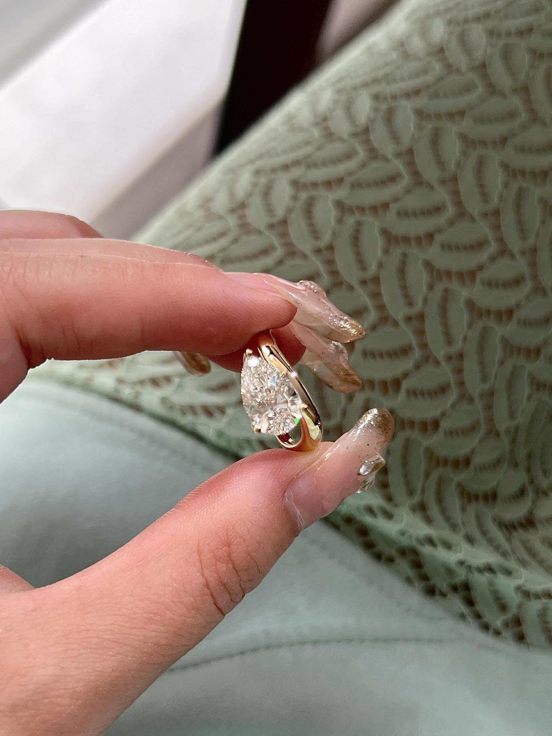 • Center Stone: 2-carat lab-grown pear diamond