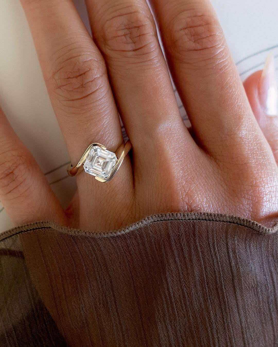 Setting Material: 14K Yellow Gold (warm luster, durable and hypoallergenic. Its soft tone balances the sharp geometric sense of the Asscher cut, creating a harmonious and noble style)