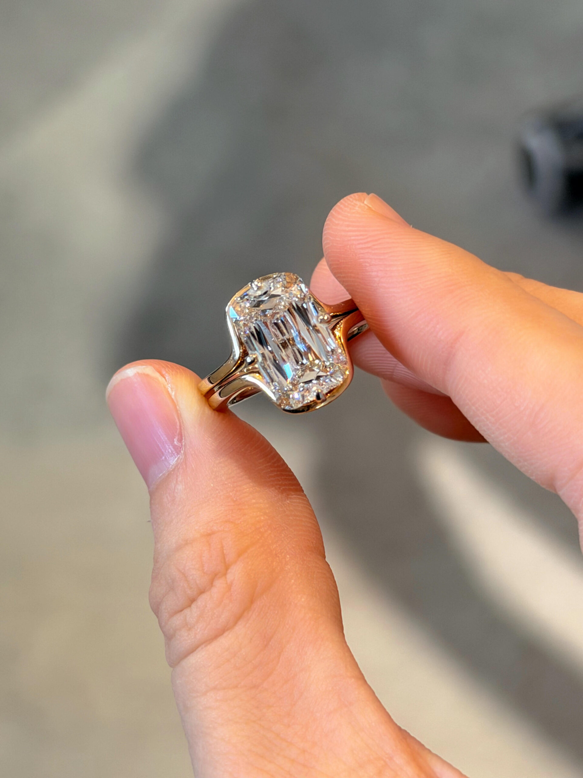 • Reinforced Six-Prong Setting: 18K gold prongs are thickened and custom-shaped to fit the elongated emerald cut’s edges, with two prongs securing each end and two on the sides. This design firmly fixes the 8.78-carat diamond while avoiding covering key step facets, maximizing light penetration.