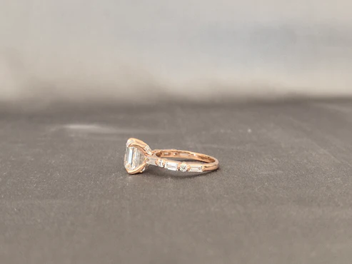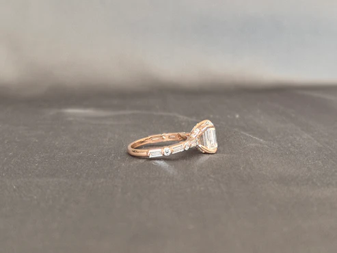 Discover a new dimension of luxury with this architecturally inspired Asscher cut lab diamond ring. The centerpiece is a magnificent Ashoka cut lab-grown diamond—a rare and elongated antique-style cut known for its dramatic facets and deep brilliance. Set in 18K gold, the band is artistically divided: one half features a sleek, polished surface, while the other is adorned with an intricate pavé of mixed-cut lab diamonds, including rounds and elongated baguettes or trapezoids. This bold, asymmetrical design merges vintage charm with contemporary artistry, creating a ring that is both a statement and a story